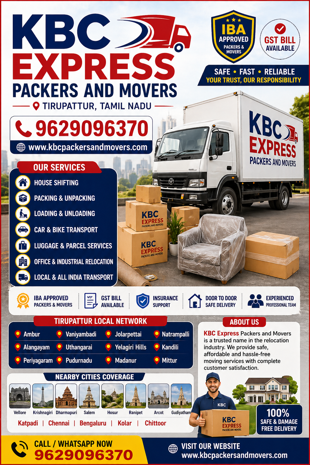 KBC Express Packers and Movers in Ranipet, Tami.....