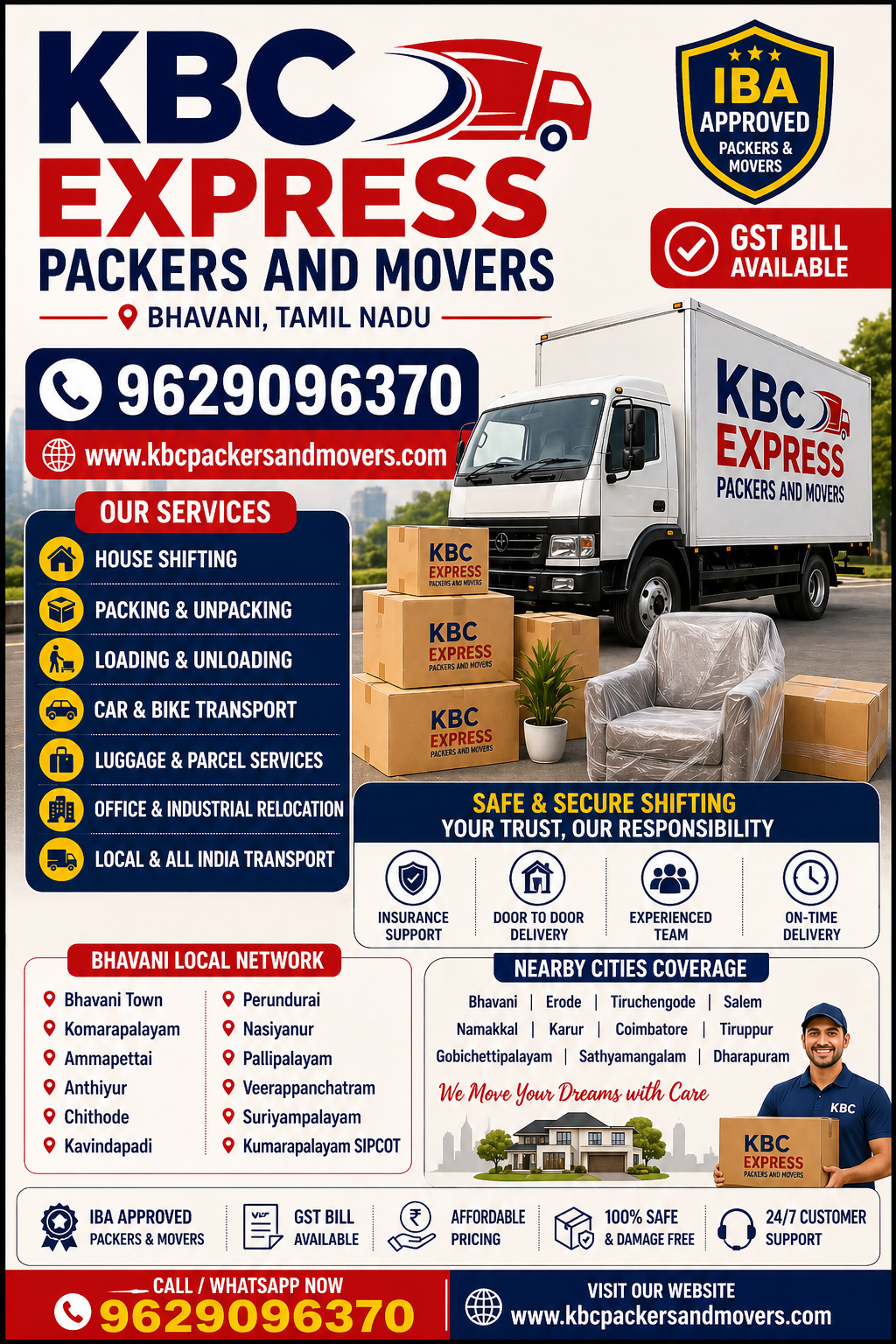 KBC Express Packers and Movers Ayodhyapattinam .....